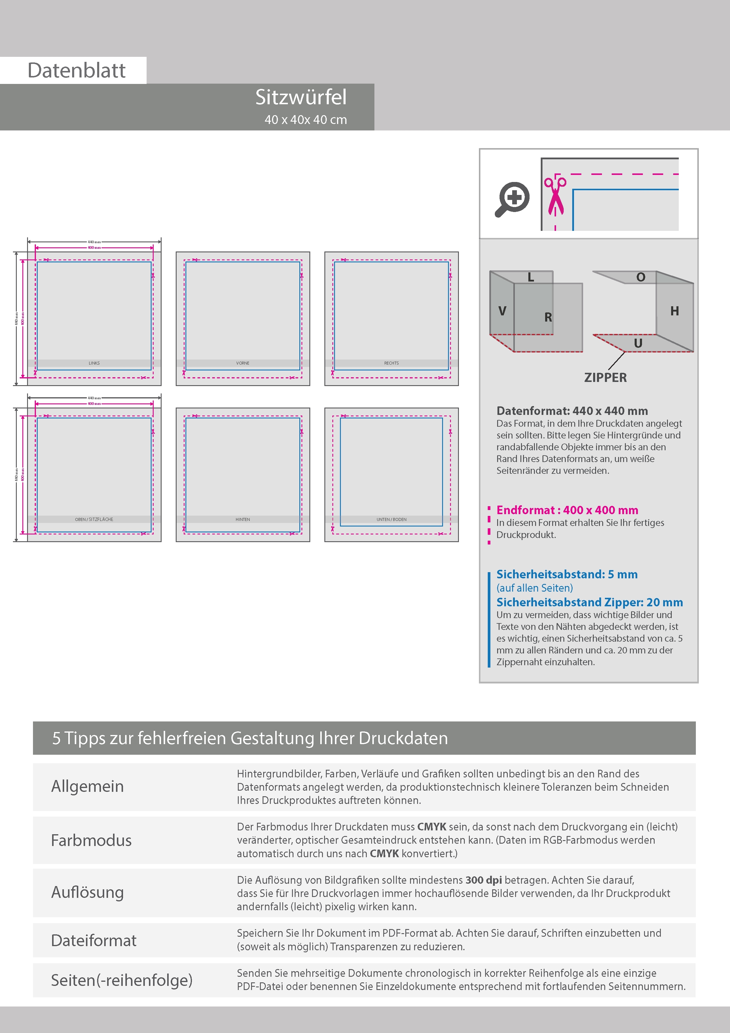 Wechselbezug für Indoor Sitzwürfel Cube 40, komplett vollflächig 4-farbig bedruckt
