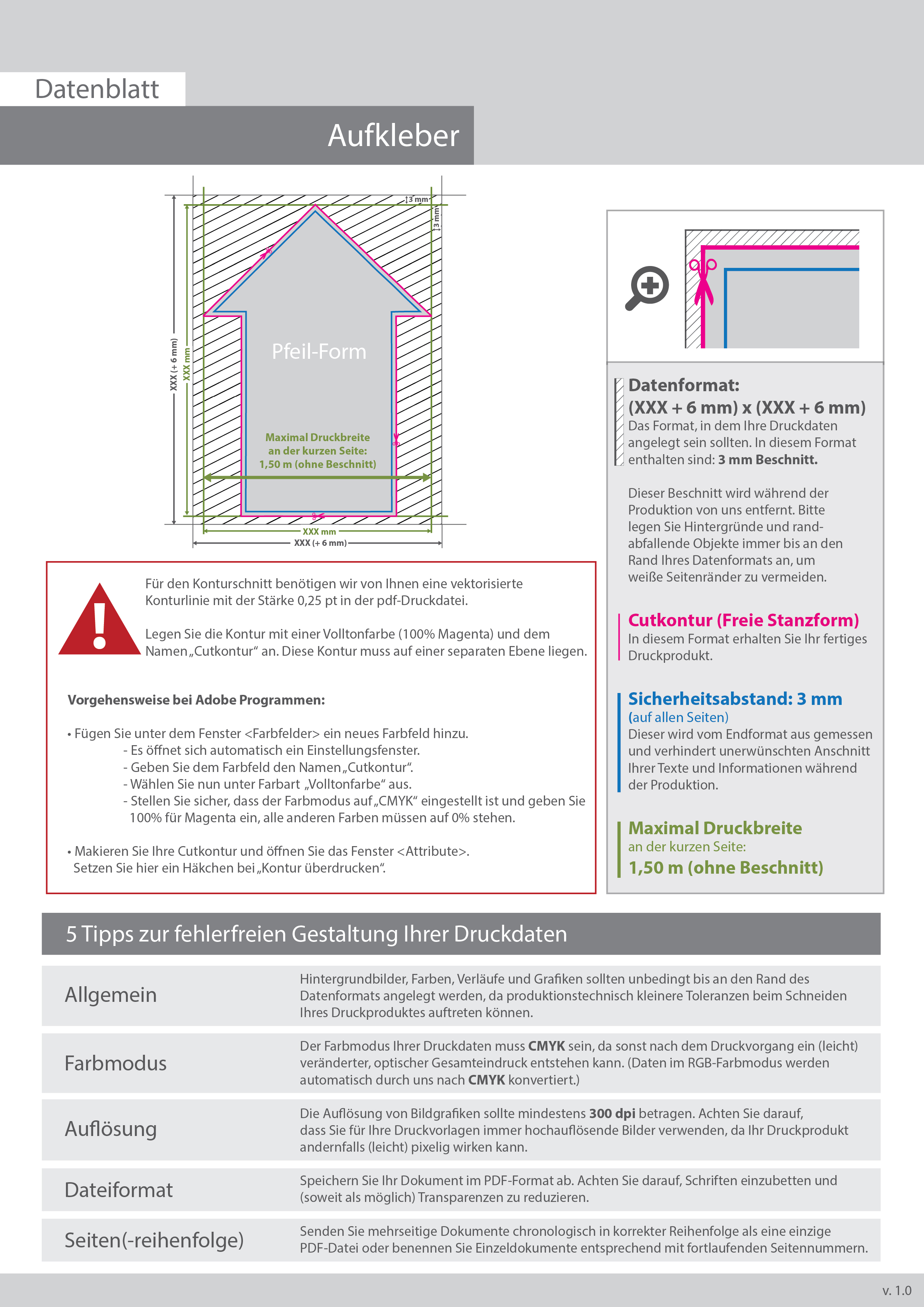 Hinterglasaufkleber 4/0 farbig bedruckt in Pfeil-Form konturgeschnitten