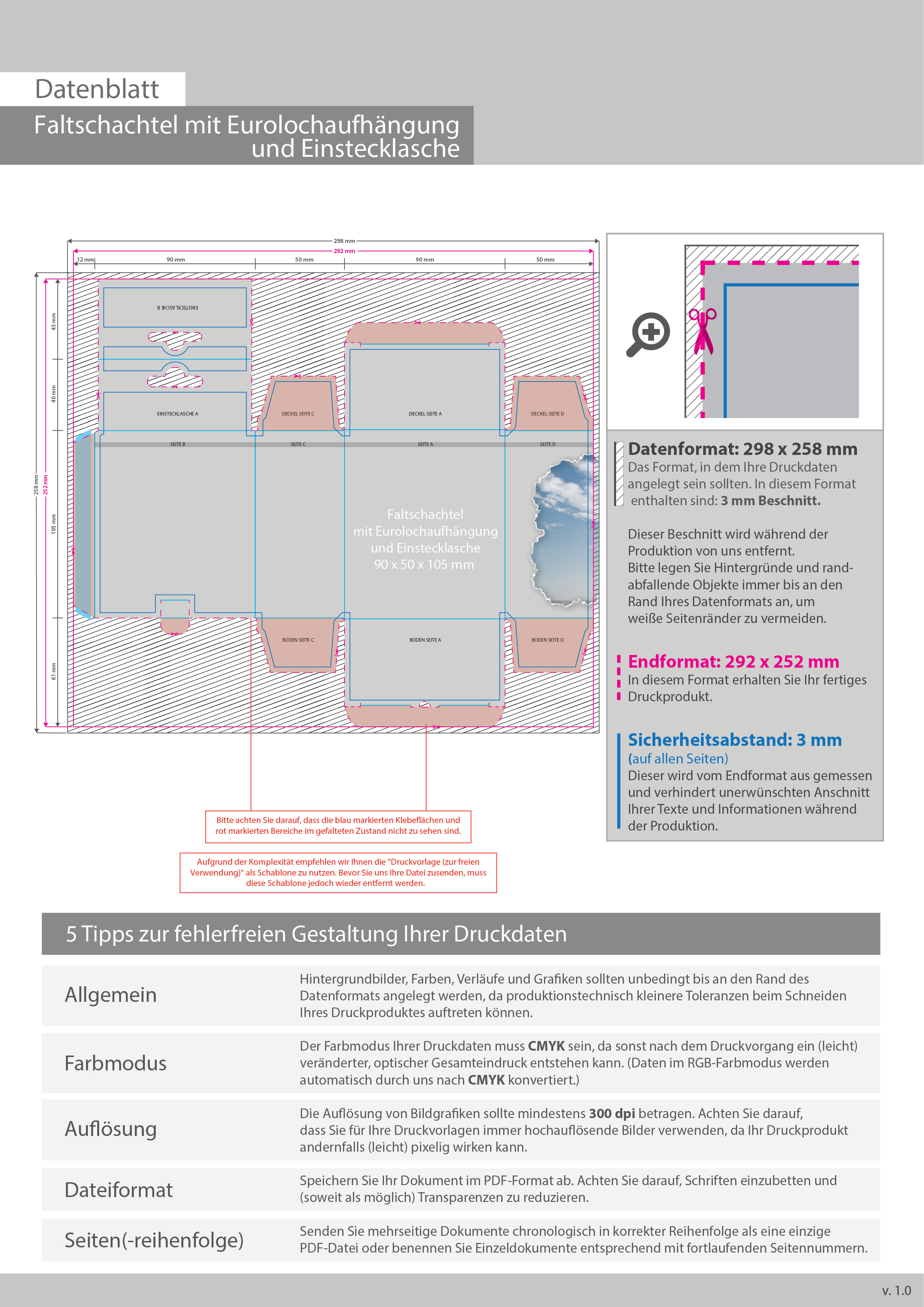 Faltschachtel mit Einstecklasche und Eurolochaufhängung (9 x 5 x 10,5 cm) einseitig bedruckt 4/0-farbig