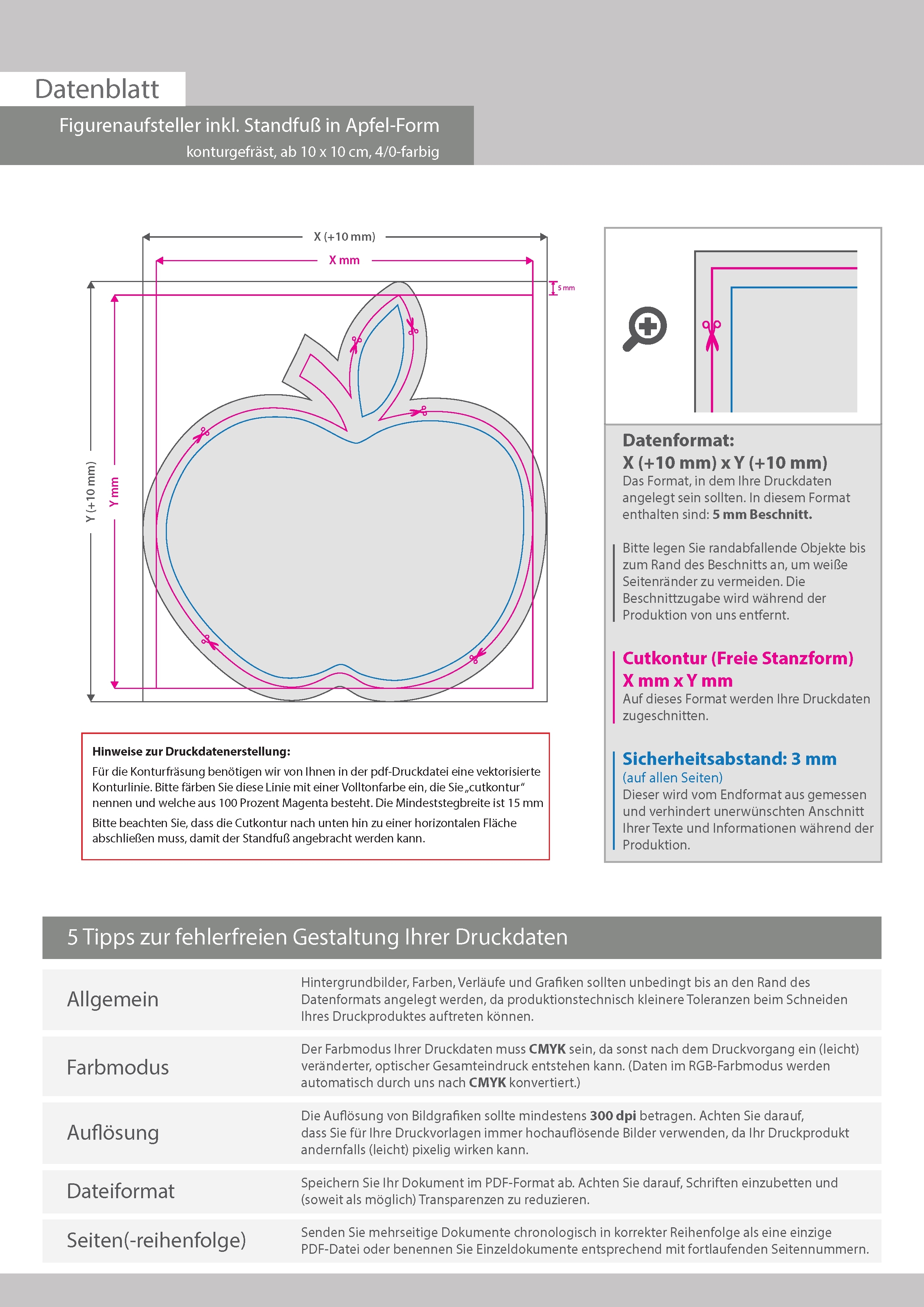 Figurenaufsteller inkl. Standfuß in Apfel-Form konturgefräst, ab 10 x 10 cm, einseitig 4/0-farbig bedruckt
