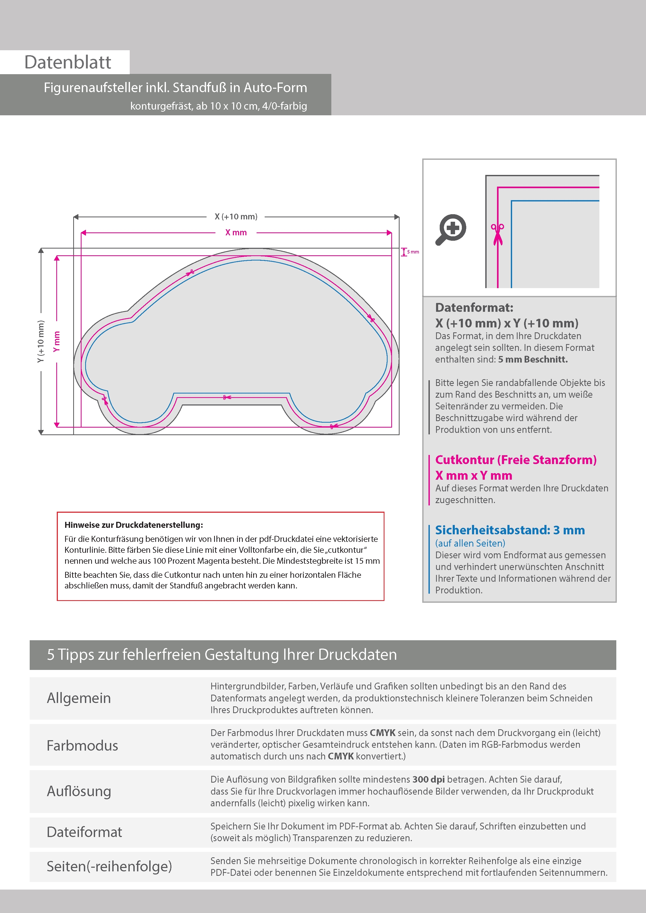 Figurenaufsteller inkl. Standfuß in Auto-Form konturgefräst, ab 10 x 10 cm, einseitig 4/0-farbig bedruckt
