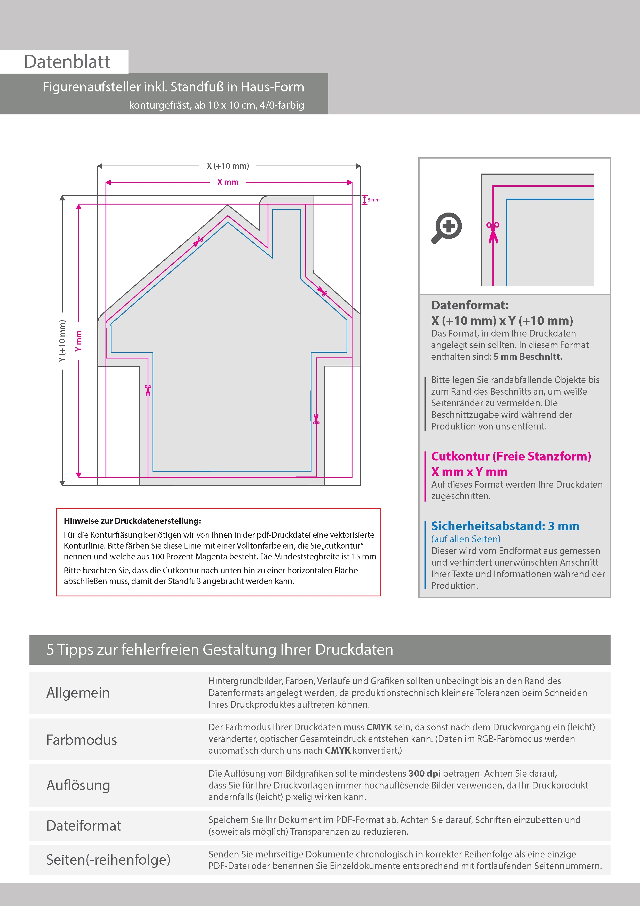Figurenaufsteller inkl. Standfuß in Haus-Form konturgefräst, ab 10 x 10 cm, einseitig 4/0-farbig bedruckt