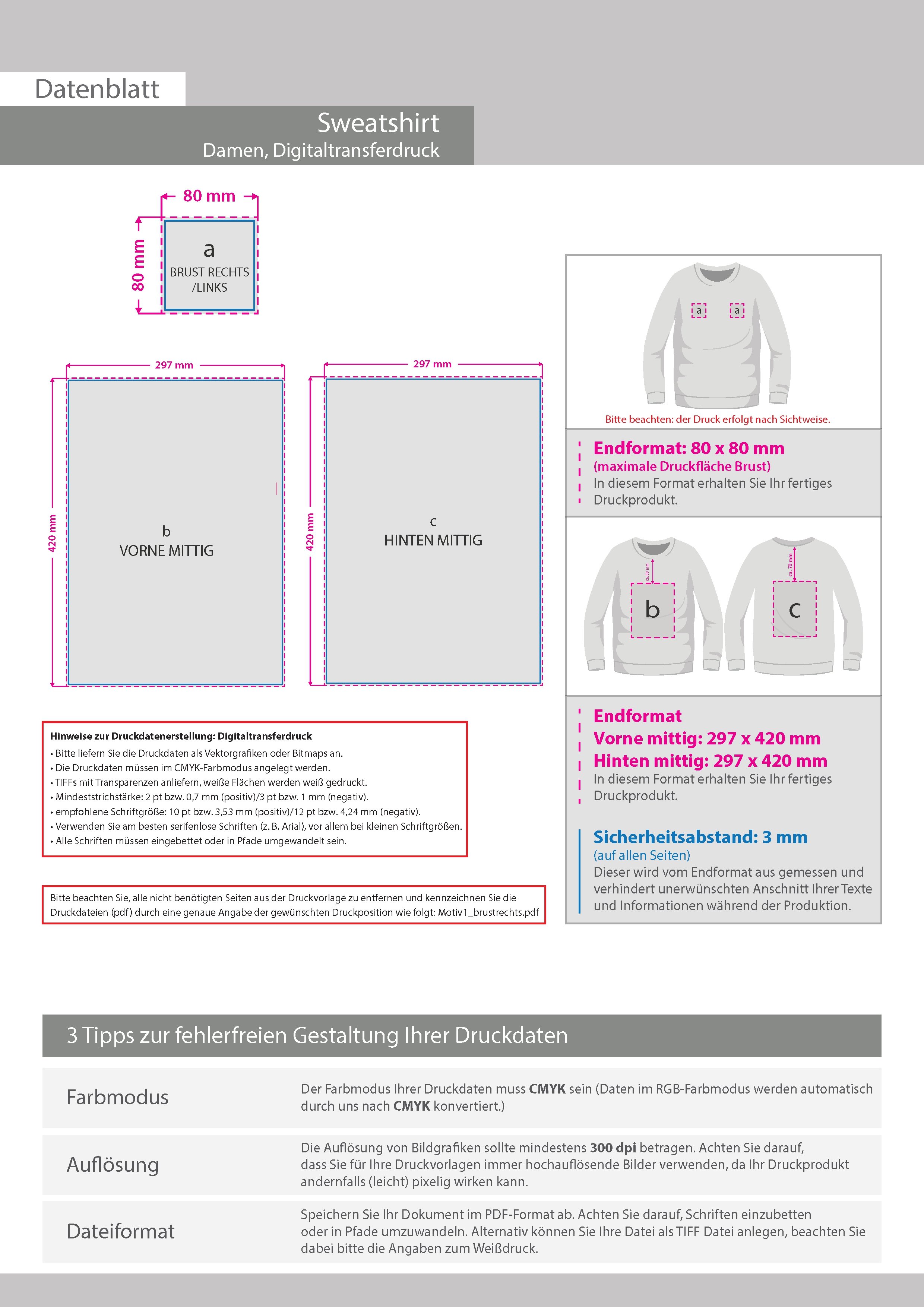 Damen Sweatshirt, Premium - mit EINER Druckposition