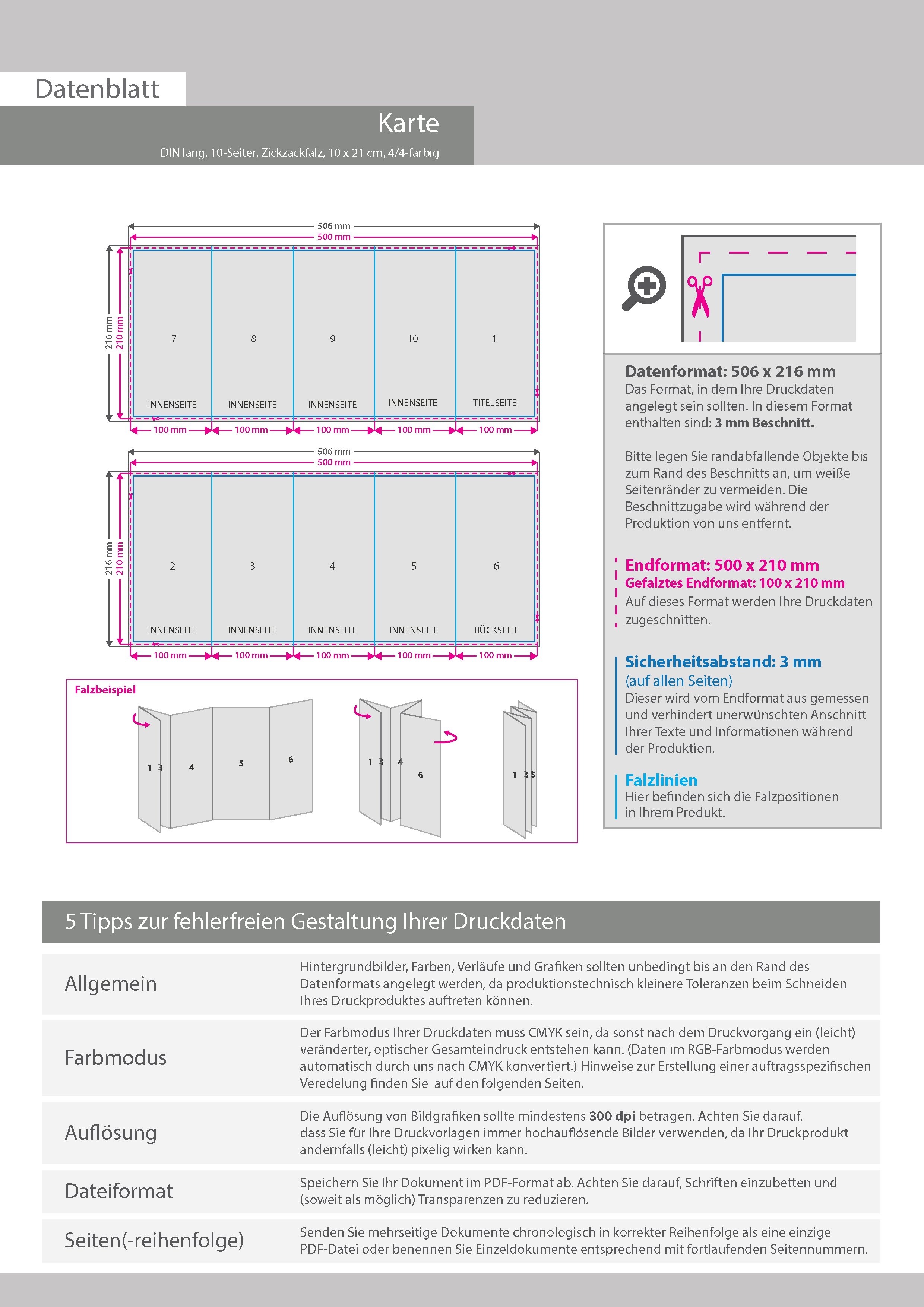 Einladungskarte, gefalzt auf DIN lang, vertikaler Zickzackfalz, 10-seitig