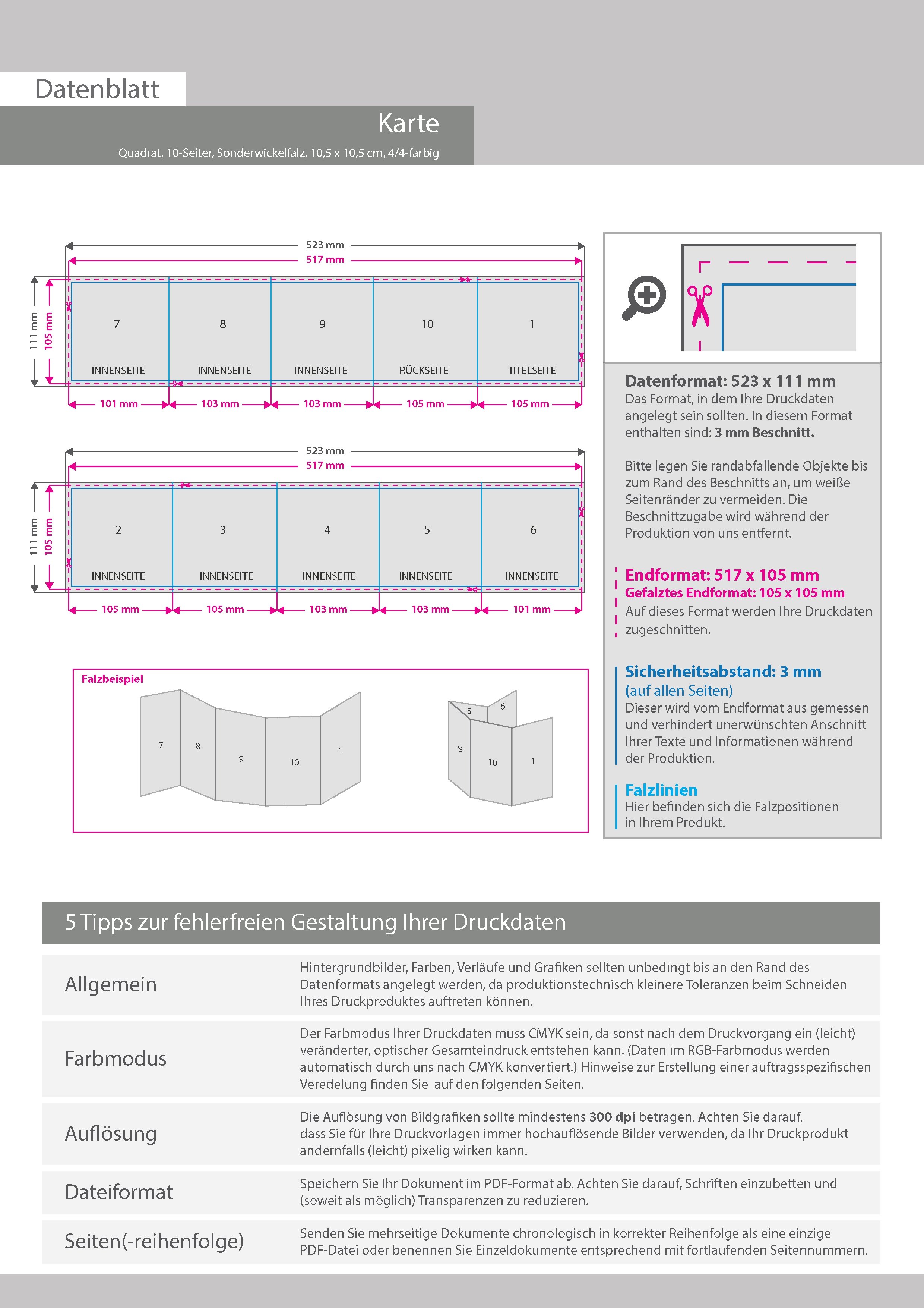 Taufkarte, gefalzt auf Quadrat 10,5 cm x 10,5 cm, vertikaler Sonderwickelfalz, 10-seitig