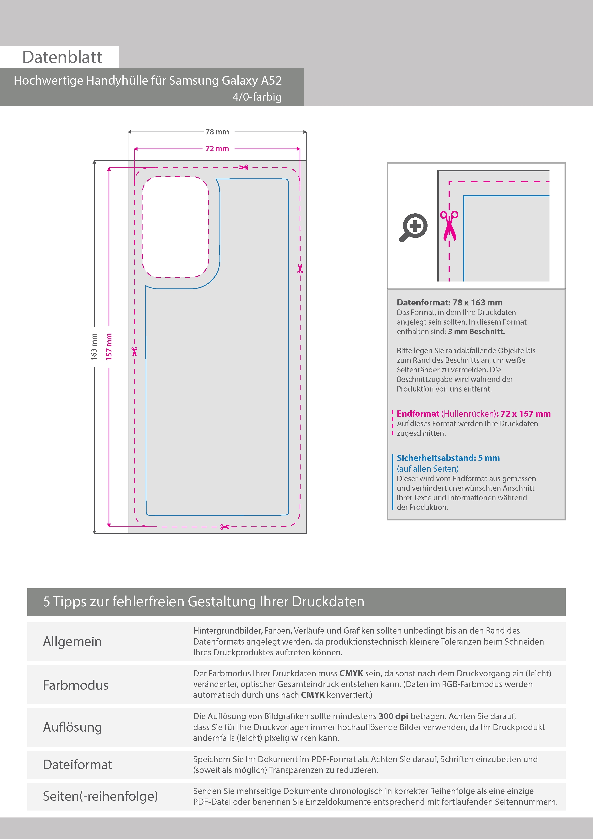 Hochwertige Handyhülle für Samsung Galaxy A52, 4/0-farbig einseitig bedruckt