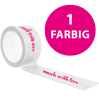Unsere PP-Paketklebebänder verschließen Kartons nicht nur zuverlässig, sie tragen außerdem zum Branding bei. Bei den transparenten Klebebändern haben Sie die Wahl zwischen weißer und transparenter Klebefarbe, den Druck führen wir auf der PP-Folie je nach Wunsch einfarbig, zweifarbig oder dreifarbig aus. Die PP-Paketbänder sind pro Rolle 60 m lang und ca. 48 mm breit. Bei der Druckfläche für beispielsweise Ihr Firmenlogo können Sie zwischen Formaten von ca. 189 x 48 mm bis 420 x 48 mm wählen.