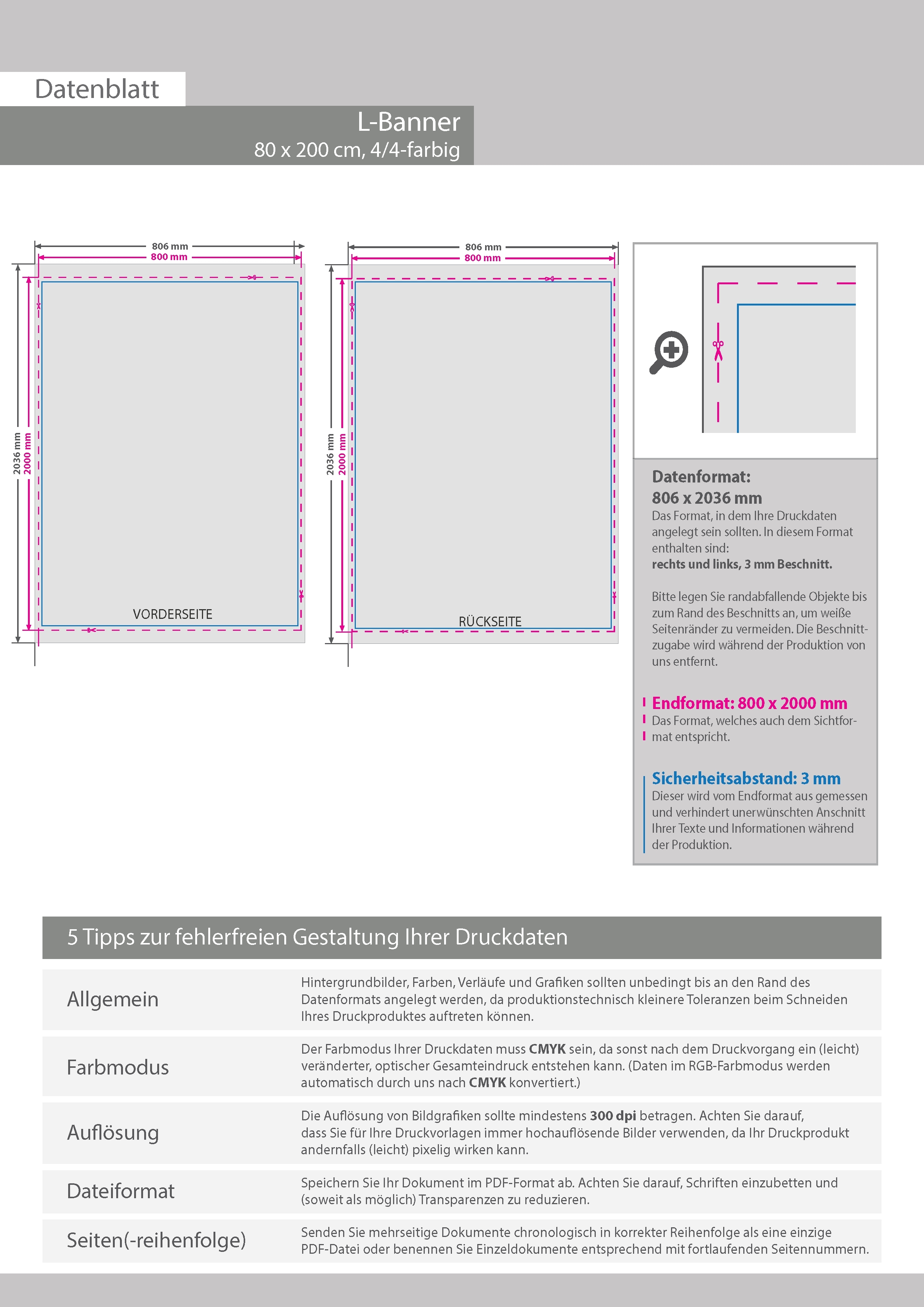 L-Banner Doubleside 80 cm x 200 cm inkl. Gestell, Druck und Versand