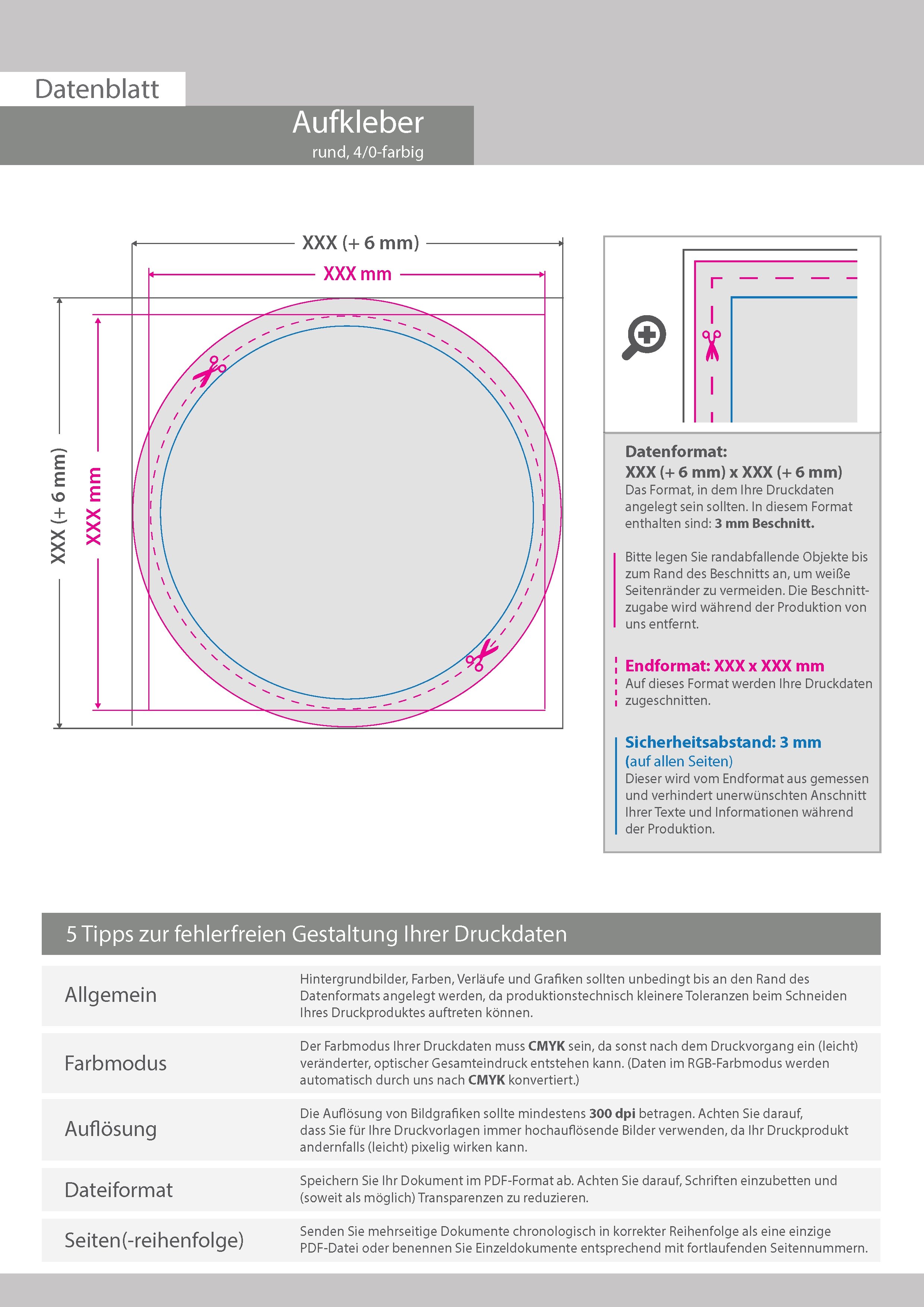 Temperaturbeständige Aufkleber 4/0 farbig bedruckt rund (kreisrund konturgeschnitten)