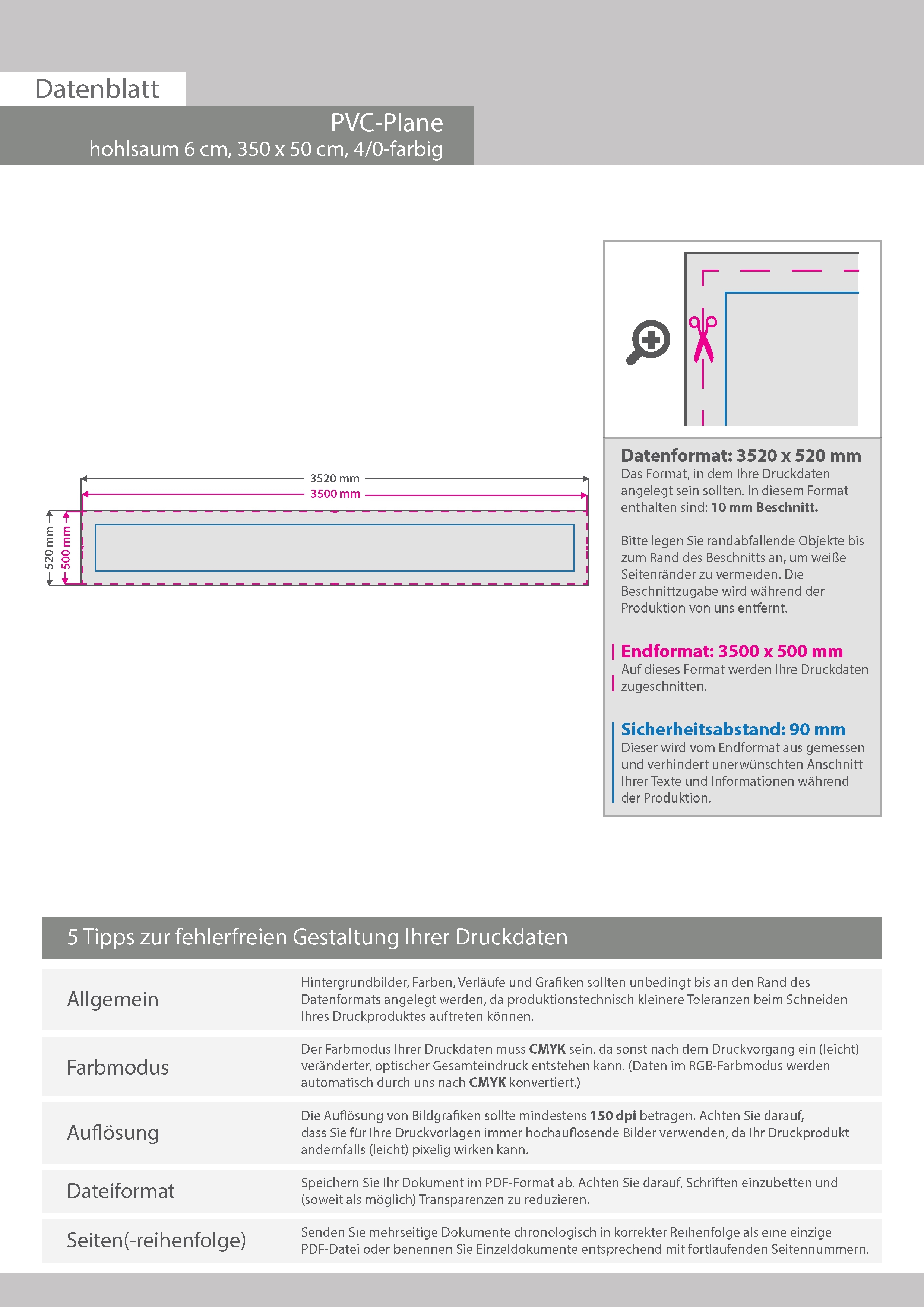 Hochwertige PVC-Plane 350 x 50 cm, 4/0-farbig bedruckt, Hohlsaum links und rechts (Durchmesser Hohlsaum 6,0 cm)