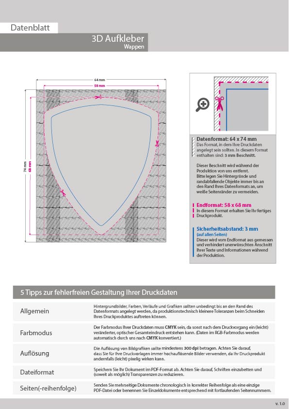 3D Gel-Aufkleber Wappen-Form (58 x 68 mm)