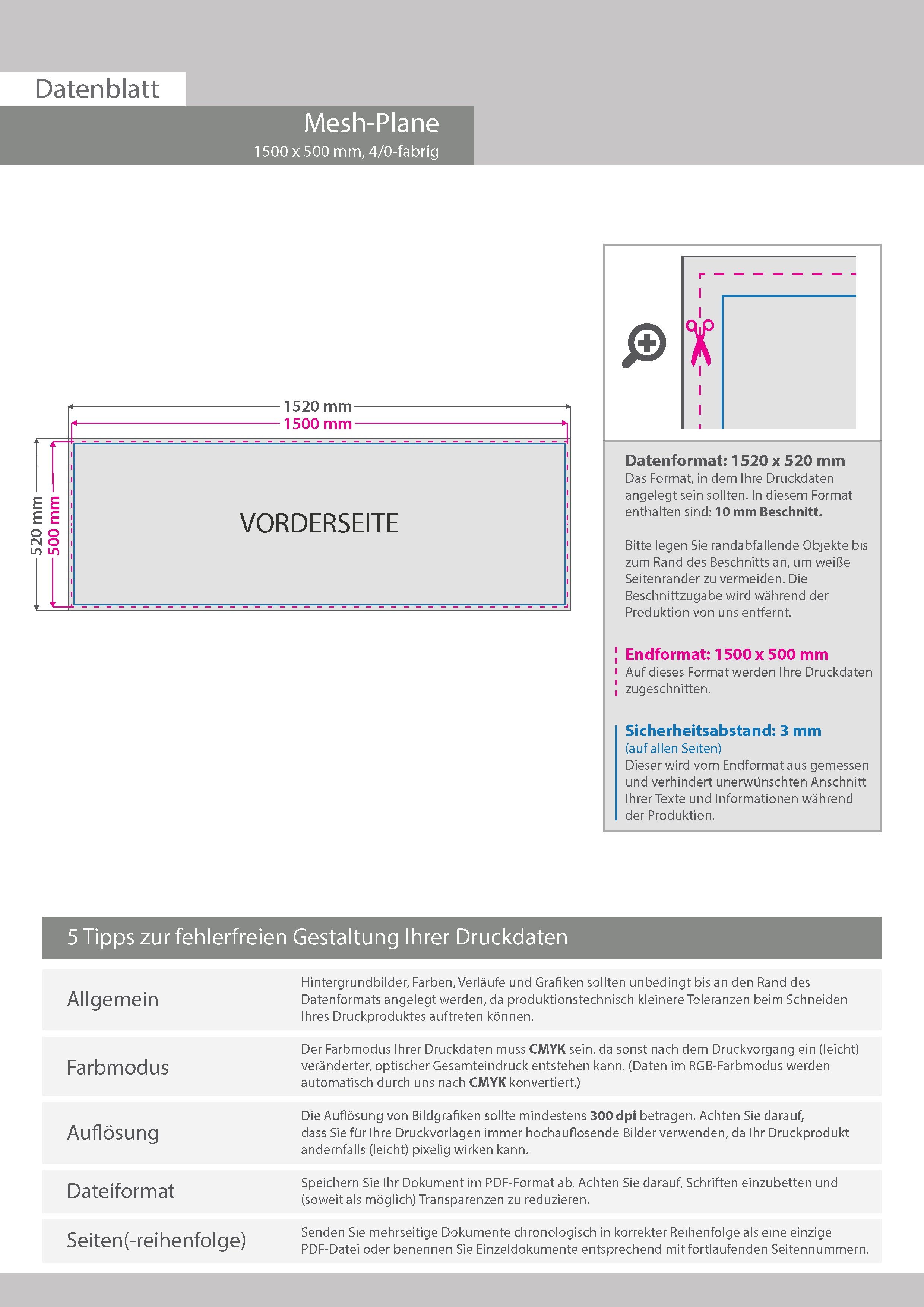 Hochwertige Mesh-Plane (PVC-frei), 150 x 50 cm, 4/0-farbig bedruckt, Ösen im Abstand von 50 cm rundum
