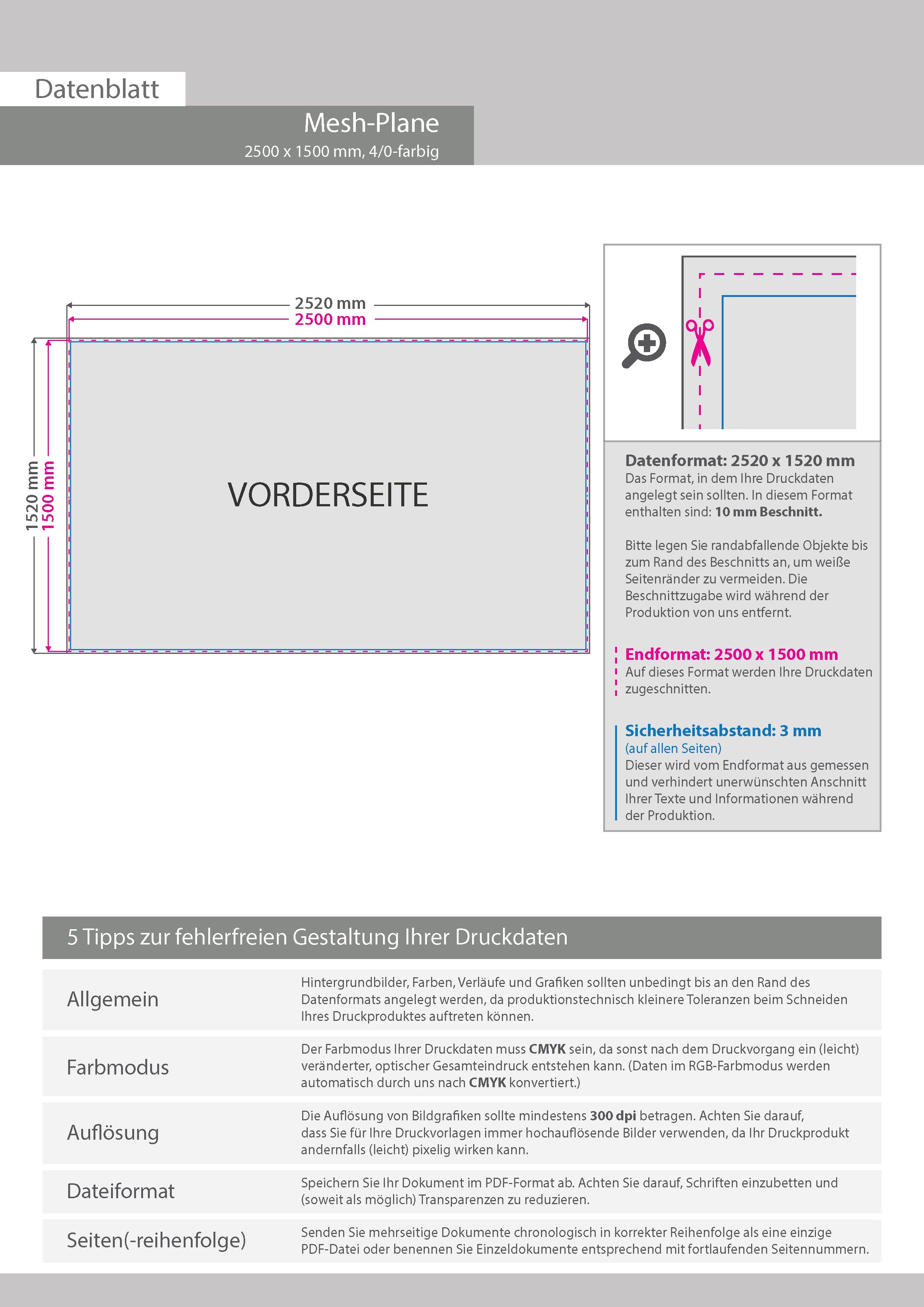Hochwertige Mesh-Plane (PVC-frei), 250 x 150 cm, 4/0-farbig bedruckt, Ösen im Abstand von 50 cm rundum