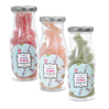 Fruchtig, süß und bei Klein und Groß gleichermaßen beliebt – das sind unsere Fruchtgummis in der Glasflasche! Diese süßen Werbegeschenke sind vielseitig einsetzbar: Verteilen Sie sie beispielsweise am Point of Sale, an Ihrem Messestand oder auf Veranstaltungen, die Ihr Unternehmen organisiert oder sponsert.